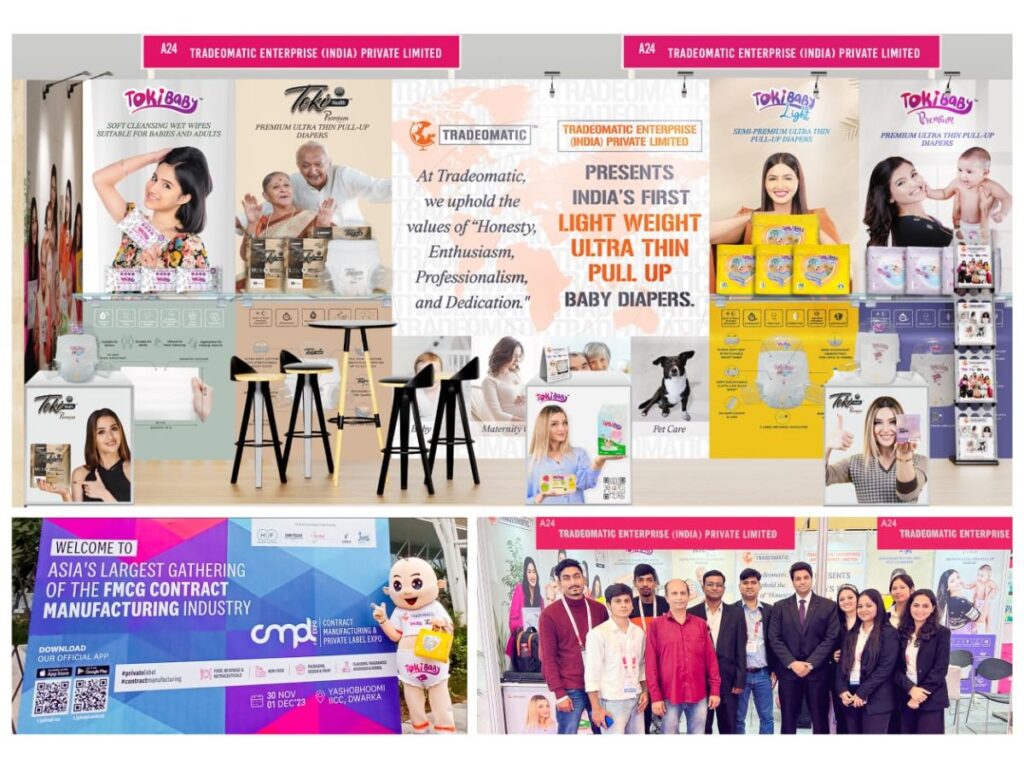 New Delhi (India), December 14: Tradeomatic Enterprise (India) Private Limited, a renowned personal hygiene company, exhibited at Asia’s largest Contract Manufacturing and Private Label (CMPL) exhibition held at Yashobhoomi (India International Convention & Expo Centre), New Delhi on November 30th and December 1st, 2023. Tradeomatic showcased their Brand TokiBaby, the first-ever Light-weight Premium Ultra-thin Baby Pull-up Diapers in India, along with TokiHealth, the first-ever Indian Premium Ultra-thin Adult Pull-up Diaper Brand with a mark of authentication.